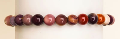 Mookaite Jasper -- Believed to promote inner calm, balance, and grounding, while also encouraging a thirst for adventure and new experiences. Thought to boost the immune system. Also said to enhance creativity, intuition, and communication.
