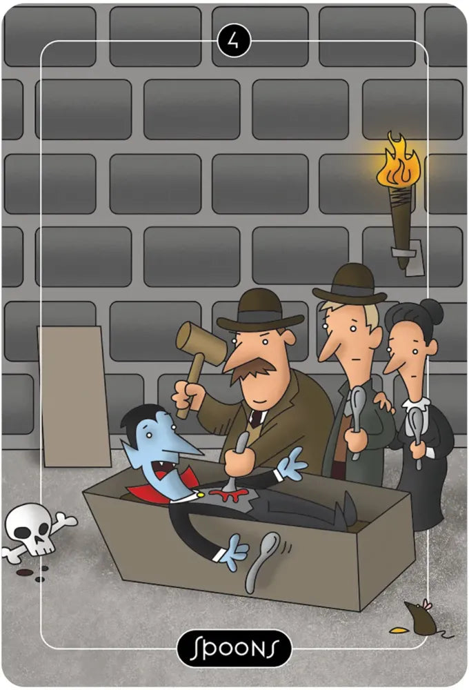Comic strip artist Adam Stoller takes a humorous approach to traditional tarot with colorful cartoon-like artwork and reimagined symbols and figures. The four suits of the Minor Arcana have been transformed into Spoons, Balloons, Buckets and Brooms. Tarot readers will enjoy searching for mischievous meanings and amusing correspondences in this delightful pocket-sized deck in a tin. Includes 78 cards and 64-page booklet.